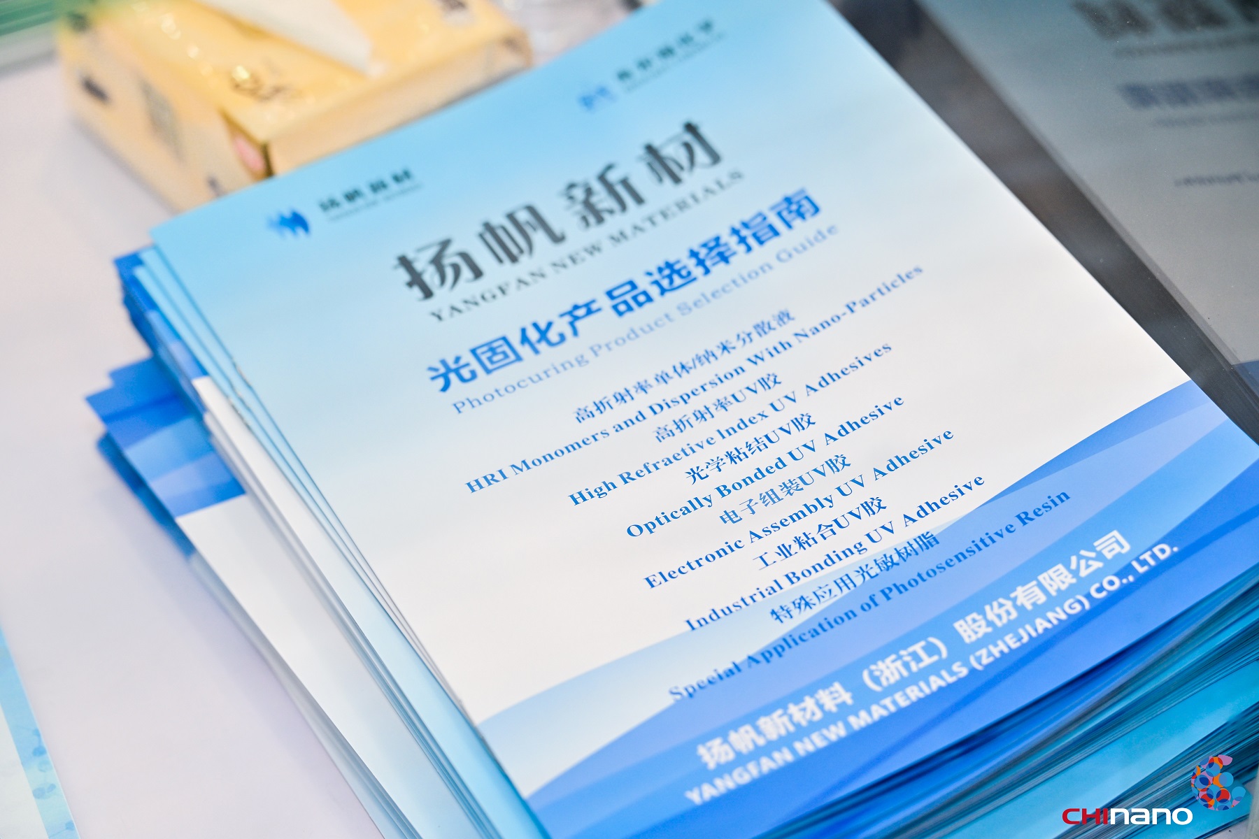 此次展會上,揚帆新材重點展示了涵蓋高折射率UV膠、光學粘接UV膠、電子組裝用光固化材料、工業光固化粘合劑及3D打印光敏樹脂等在內的諸多核心產品。這些產品體現了公司在紫外光固化新材料領域的深厚技術積累和創新能力。